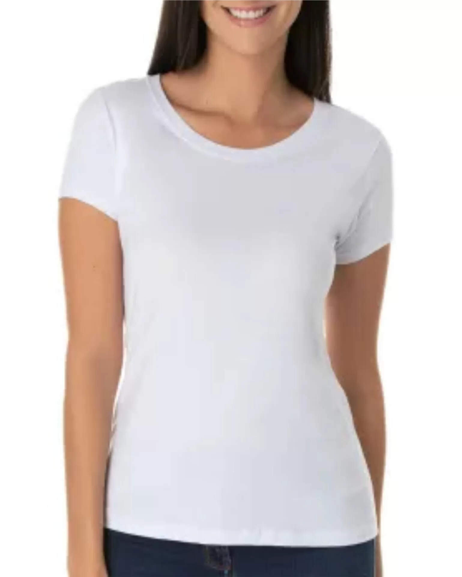 – Baby look produzida em malha 100% poliéster branco;